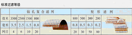 2、濾網分鉆孔編織復合濾網和契形濾網兩種。訂貨時可根據過濾要求特別注明。